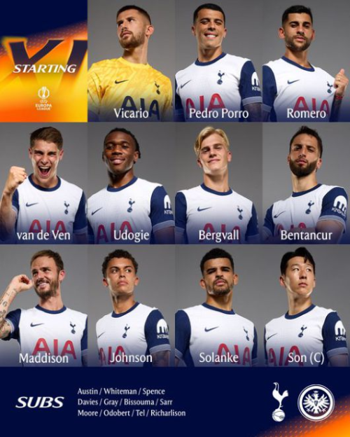 이번 경기에서 토트넘은 4-3-3 포메이션을 가동하였습니다. 수비라인은 굴리엘모 비카리오가 중심을 잡았으며, 데스티니 우도기, 미키 판더펜, 크리스티안 로메로, 페드로 포로가 안정적인 수비를 펼쳤습니다. 중원에서는 제임스 매디슨, 로드리고 벤탄쿠르, 루카스 베리발이 활약하며 공격의 시발점이 되었고, 최전방에서는 손흥민, 도미닉 솔란케, 브래넌 존슨이 상대 골문을 향한 강력한 압박을 시도하였습니다.
